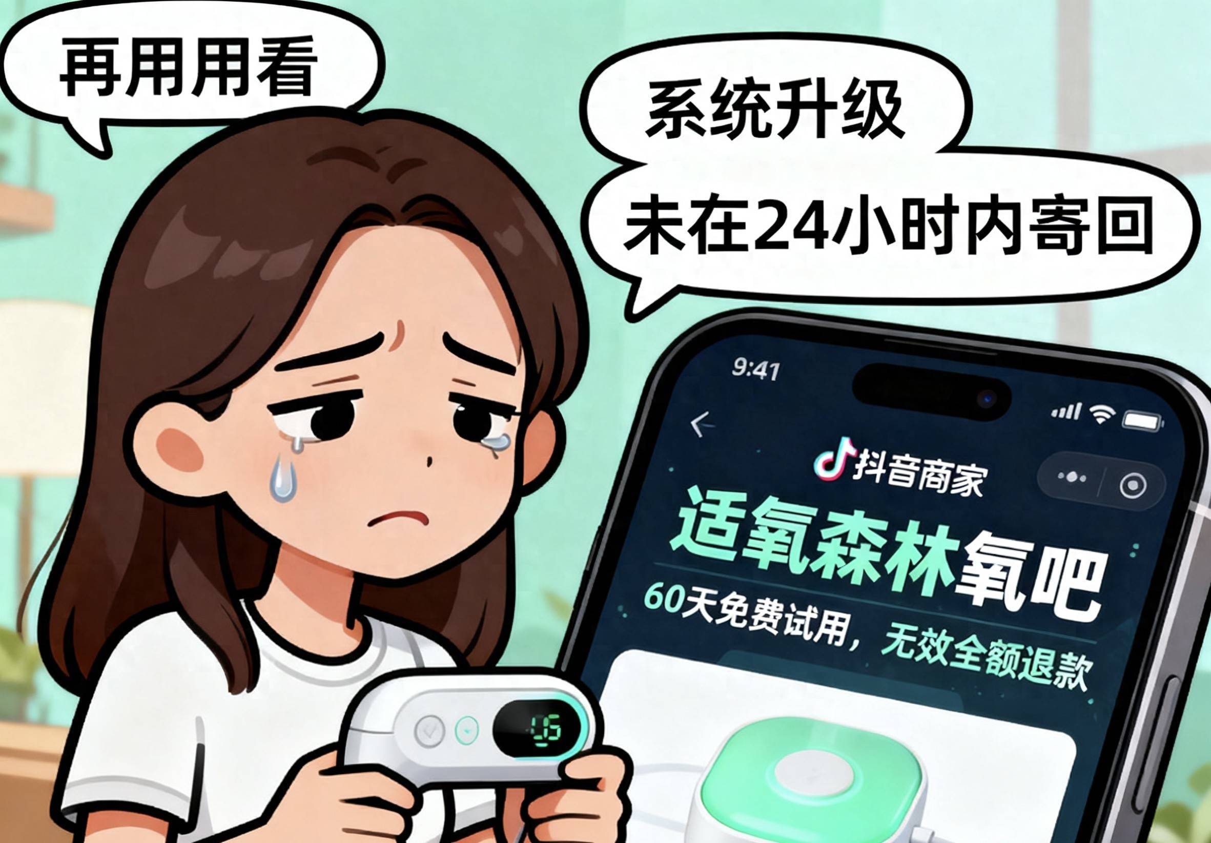 今年8月,陈女士在抖音平台“适氧森林氧吧”购买了这台宣称可通过负氧离子改善睡眠的仪器。商家承诺60天免费试用,无效可全额退款。使用一个月后,陈女士于9月24日向商家反馈效果不佳并提出退货。客服建议她“用到45-50天再申请”。陈女士遵循建议继续使用至10月18日,再次申请退货。这次商家表示正处于“主体升级中”,无法立即处理,但承诺只要售后申请通过,“24小时内寄出即可”。