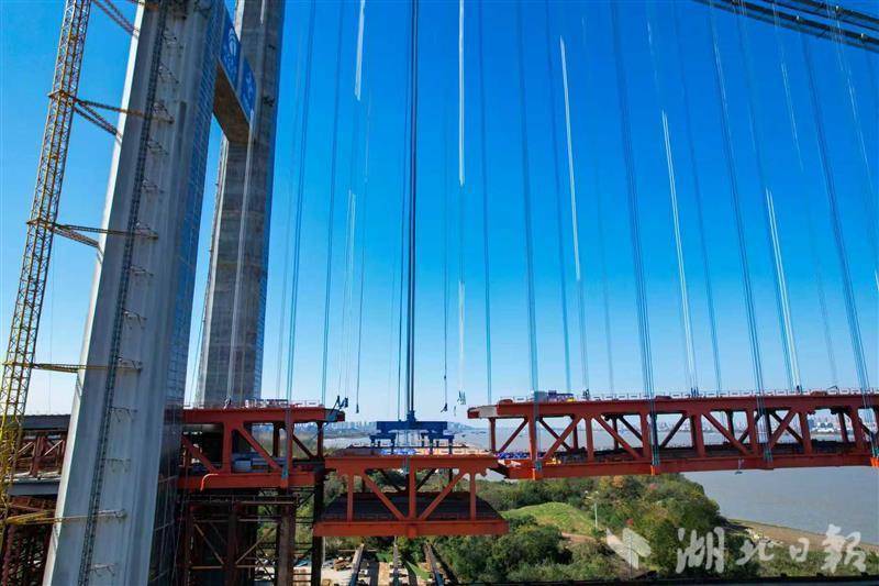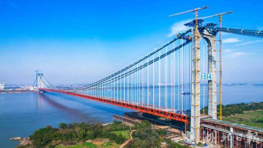 冬日暖阳下,四条主缆的燕矶长江大桥巍峨矗立,离大桥5公里远的鄂州花湖国际机场不断有航班起降。“为保障大桥顺利合龙,在省交通运输厅工程事务中心的帮助下,我们对合龙口的标高、里程和轴线不间断地进行监控与测量,精确计算温度、风力等环境因素对钢梁形变的影响,最终,钢桁梁以毫米级的精度平稳嵌入预定位置。”中交二航局燕矶长江大桥项目总工程师罗航说。