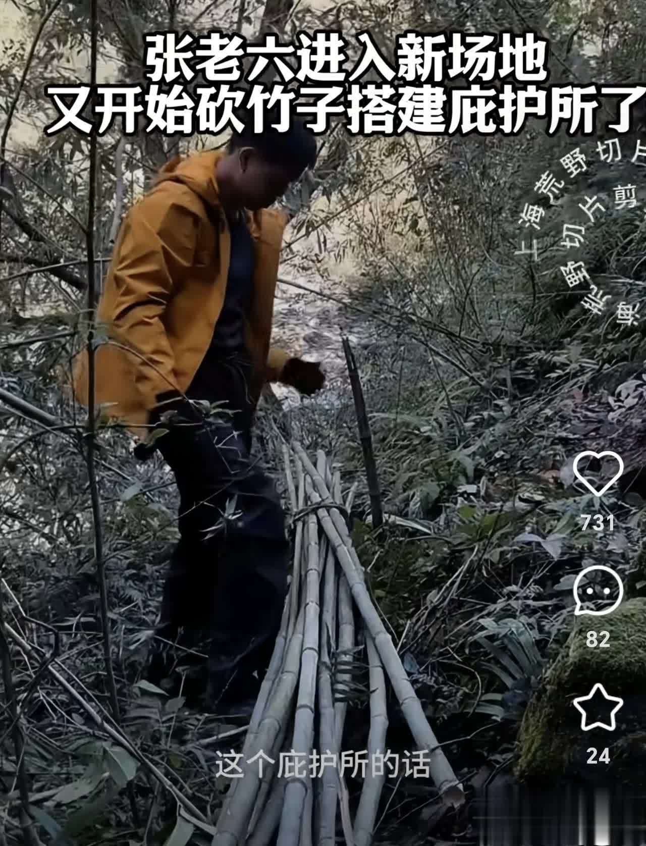 三号种子选手,张老六。张老六今天做好了去火工具,还没有生火成功,不过,他做了一张“豪华席梦思”床。用几根粗壮的木头拼在一起,上面铺满干燥的松针、树叶等,下面还悬空的,这样就不怕潮湿了。不过,张老六已经砍好了竹子,明天就可以开始建他的豪华“大别墅”了。