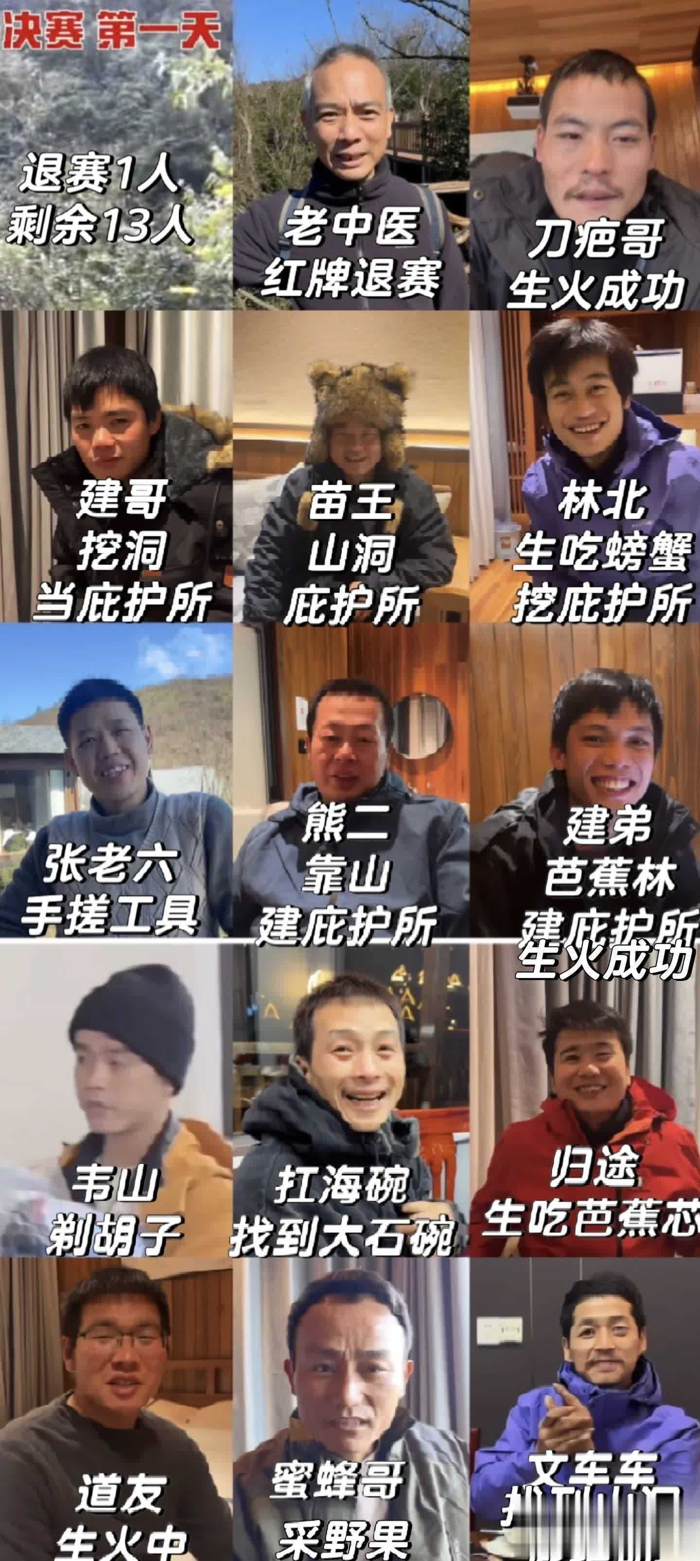 其他选手小编这次就不讲了,关心他们进度的,可以看下图哦。从今天的表现来看,小编觉得,苗王和张老六这两个人依旧是最有冠军相的人,其次是刀疤哥,林北吧,他的求胜心一直都不强,估计到后面会退赛。你看好谁成为最后的冠军呢?